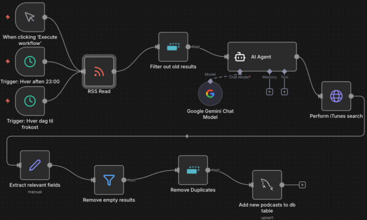 Læs og lær hvordan vi brugte Overskrift-data og N8N til, automatisk, at finde en lang række nye danske podcasts, og lad dig inspirere til at bygge dit eget workflow understøttet af kunstig intelligens.